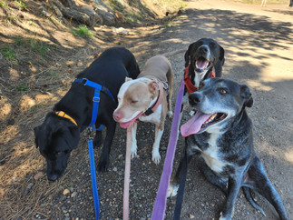 Yoshi, Lou, Nelly and Dylan headed up the Third Flatiron/Royal Arch trail connector for their hike today. Dylan was panting pretty heavily as we made our ascent. Nelly kept veering off toward shade, and we made several stops along the way. Everyone was a bit hesitant to take water at first, but they all eventually started partaking. Yoshi kept pretty calm as we passed other dogs. He only pulled ahead a little bit and didn't make any fuss. Lou liked stopping in place to let hikers go by, even when there weren't dogs with them and the trail was plenty wide to accommodate us all without pulling over.