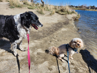 It was a gorgeous afternoon as we set out for our pack walk around Wonderland Lake. Lumi made the most of the water at Wonderland Lake when we stopped there. Ruffers and Carl only briefly got their paws wet before returning to shore. Lumi forewent rolling in the dirt and brush after his dip even when Ruffers and Carl were stopping to follow some intriguing scents in the area.