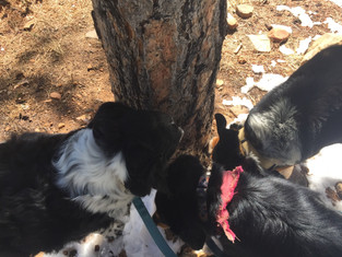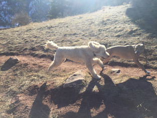 Rey and Zoey had a lot of fun chasing each other around the Red Rocks Trails at Settler's Park. Carl and Lou both got pretty worked up, seeing their packmates running. Rey frequently ran back over for a quick pass, which got Carl and Lou both to hop around - either to dodge or to intercept her. Lou had an upset stomach again, before the walk, and turned up some pebbles and a large chunk of a bully stick. I guess he is at the stage of puppyhood where he is actively testing the limits of his digestive capabilities.