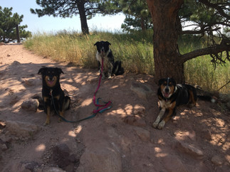 Riley, Ruffers, and Sputnik all waded through the Farmer's Ditch on our way up to the Red Rocks at Settler's Park this morning. We took an easier pace up the mountain and only did one loop, rather than the two loops we have usually been doing. After that, we strolled along Boulder Creek. The dogs got in for another soak, and Riley was so eager that she nearly dragged me in with her as we navigated the slope of the bank down to the water.