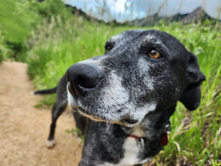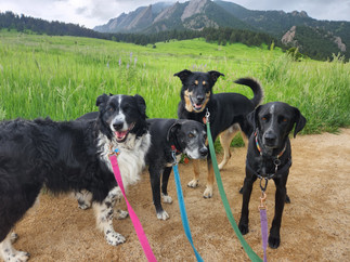 Distant thunder set the tone for the day as the pack ventured out to the trails at Chautauqua and Gregory Canyon. Ruffers halted at the sound of a far-off rumble, but found the courage to keep moving with her packmates. We skipped the stop at the stream when we started up the mountain trail. There was plenty of cloud cover, and I didn't expect us to stay dry for much longer. As we made our way up, Bear and Avo chased each other down the branch trails that lead down to the water. When Ruffers, Dylan and I caught up to the branching point, Bear and Avo would come racing back and up to the next branch. Passing hikers chuckled at the pair of them, obviously having fun together. Dylan eyed me, warily, a short way up. I promised him that we weren't going past the bridge, and after a long moment of consideration, he complied and kept following. Thunder started growing louder and more frequent as we made our way back down. As we approached the Chautauqua trail head, the first, scattered hail balls began. We dropped off poop bags in the receptacle and hurried back to the car as the hail started coming harder and harder. We waited out the peak of this first wave of hail before the dogs headed back to their respective homes.