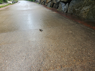 We started later than usual, waiting for the hail and heavy rainfall to pass. The roads looked like we had just had a few inches of snowfall in the preceding 90 minutes. The underpasses along the Bear Creek Greenway were flooded, so we took the above-ground routes. Yoshi was in a playful mood throughout the walk and kept trying to get Buddy and Alfie to join him. Buddy didn't take much convincing. Alfie's composure also faltered on a couple occasions. We had to make an extended stop at one point as I settled everyone down and got their attentions. Thankfully, at least Lou maintained composure while her young packmates were working on their circus act. On the return leg of the walk, I saw a small arthropod crossing the path. My first thought was 'scorpion', but I was just as surprised to realize it was in fact a craw fish - and a pretty big one at that! Yoshi and Alfie were both intrigued by the creature. Lou and Buddy didn't seem to take particular notice. When we got near, it turned to face us and then twitched its tail to try to escape. The method was far less effective out of the water and its movement across the path was very slow. When we backed away to give it some space, I realized there was another, smaller craw fish on the path just behind us. Weird day.