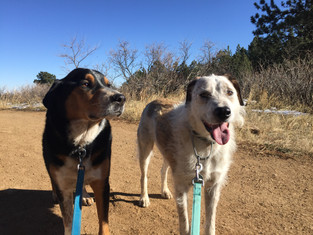 Avo and Riley were raring to go when we started our walk at the Bear Creek Path this afternoon. I was dreading an outing full of rowdy behavior, so I really focused on conveying calmness to the girls. I corrected them with a soothing tone of voice, and pet them with long, slow, massage-like strokes down their necks and backs. Riley's reaction was the most pronounced: she went from reacting to my every movement by jumping around me, to calmly sitting in place with sleepy eyes. Avo also settled down noticeably, and started laying down in front of me when we paused for a round of relaxation. Mamacita and Zoey also received the same kind of attention, though they were pretty calm to begin with. Along with a few bits of beef jerky to further reward their attentions, the dogs all grew more and more calm and in-sync through the walk. Riley and Avo still perked up quite a bit at the sight of a Australian Shepherd chasing a frisbee in an adjacent field, but I kept pausing and focusing on them with a calm demeanor, to bring them back to baseline. I realized that, lately, I've been letting my mind wander more when I am out with the packs. Hopefully, with a renewed mindfulness, I can better address some of the less constructive habits of our still-maturing pack members.