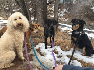 Mamacita did not have the same pep in her step today as she did Tuesday. She set the pace by lagging at the rear for most of the walk. Riley enjoyed trekking through snow banks beside the Boulder Creek Path. There was one big tree just west of the library that had the whole pack sniffing for a good, long while. Riley was the first on it, with Avo and Zoey joining in to sniff in short order. Mamacita followed up, and then I eventually had to urge Zoey along because she just didn't want to move on.
