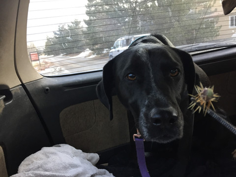 Avo and Rey got to race around in the field beside the trail at CU South this afternoon. Avo's fun came to an abrupt end when she got a spiky cactus ball stuck in her leg. She came back over to me, holding her paw up - but refused to let me get near the cactus stuck in her. We went the rest of the hike before she ended up picking it out herself, once we returned to the packmobile. We then discovered another one stuck in one of her hind legs. I don't think that one had gotten as deep as the first, because she actually let me pluck it off with a comb. Zoey and Mamacita were pretty chill throughout the walk, while Rey ran around a bit with some of the other dogs we came across. Avo was well-mannered today, despite - or perhaps because of - the distraction of spiky cactus balls stuck to her legs.