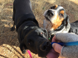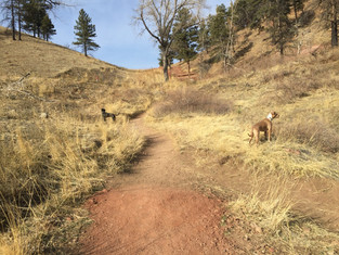 Avo and Rey raced each other around the trail at Settlers Park, this afternoon. After an initial bout of running, they turned their attentions to sniffing and exploring, rather than running and playing. We didn't come across any other dogs on the trail. Zoey and Mamacita were good, reliable hiking buddies, who trotted along right at my side. Zoey lingered behind to sniff now and then, when she had some off leash time, and then she'd catch back up and walk at a heel again.
