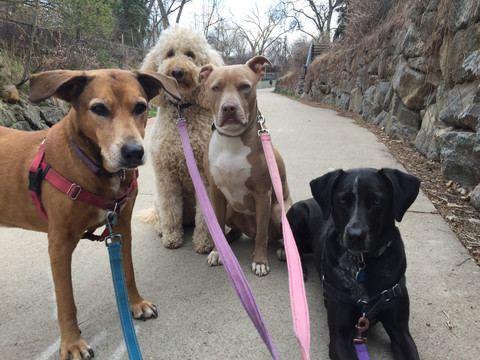 The snow from the morning was already melted by the time Mamacita, Zoey, Rey, and Avo headed to Bear Creek for our walk this afternoon. Rey and Avo became quite alert at the sight of other dogs we passed by, but I redirected their attentions to me and held their focuses with the help of some treats. There were a couple times along the way when Zoey insisted on making a stop, but then just stood and stared off at nothing in particular. Whether or not Zoey joined then, her packmates took those opportunities to sniff around in whatever area it had seemed Zoey was interested in.