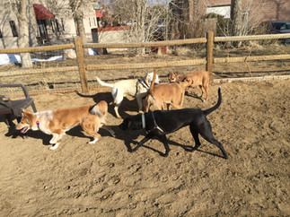 Avo and Rey burst into a chase upon our arrival at the Valmont Dog Park. Zoey first snatched up a tennis ball, and then joined in with them. Mamacita poked along the fence, sniffing her way around the perimeter of the park. A little later on, there was a playful male who tried to get Mamacita's attention. Mamacita hung out around him for a bit, but didn't have the energy to keep up today. Rey ran around with an Australian Shepherd. Zoey followed around a guy who was carrying treats and working on recall with his young dog. Avo kept rolling around in the dirt. She and Rey ran with each other on and off during the visit, and they didn't get too rowdy today.