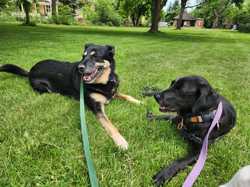 The pack stopped to sniff and mark a lot of spots along the Baseline Trail towards Gregory Canyon - particularly the boys. On our way up the Gregory Canyon Trail, Avo and Bear kept slipping down the small side paths that lead to the stream. Dylan, Griff and I followed them there and found one spot that felt like and adventure-lagoon-spa for dogs, complete with waterfall and several different basins that collected water, which then spilled over into the next area. The dogs enjoyed themselves there before returning to the main trail and continuing on our way up. We made another stop at the doggie spa on our way back down. Griff got a boost of energy and started bounding all around. When we walked through Chautauqua Park at the end of the hike, Dylan enjoyed a roll in the grass. Avo then rolled around in a different spot on the other end of the park. When she was done, Bear flopped down and rolled around in front of her and then we all just enjoyed sitting in the grass for a minute before heading back to the packmobile.