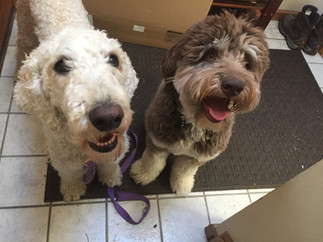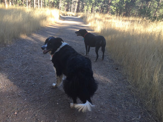 Ruffers and Dylan were on the case at the Chautauqua Park. They followed their noses through the grass to some bushes. After sniffing the bushes for a bit, they back-tracked the way they had come. I don't know what the story was, but it must have been pretty interesting. They continued to do a lot of sniffing by the trail head. Once we got a bit further up the trail, they gave their noses a rest. We encountered a few friendly dogs along the way. Dylan and Ruffers were both happy to say hello.