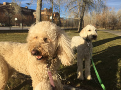 Rey and Lou both wanted to lie in my lap at the house before our walk this afternoon, so they did their best, with Lou ending up half on top of Rey while Zoey looked on jealously from the floor in front of the sofa. After a cuddle, the pack headed out to the Bear Creek Greenway. Carl and Lou both stopped to sniff at a lot of points along the way. Carl also enjoyed pouncing on some leaves that blew across the path whenever a breeze picked up. Blu and Carl had their noses glued to the ground when we stopped in the field by the basketball courts. Rey, Zoey, and Imogene chewed on some twigs. Meanwhile, Gidget and Ruffers went for a shorter walk to Wonderland Lake with Jen, since Gidget doesn't like car rides and Ruffers had already been out for a pack hike in the morning.