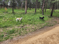 Avo did a lot of running and roaming through the fields as we hiked the Chautauqua today, while Griff mostly stuck to the trail and led the way. Avo discovered last week's deer leg again, some ways off the trail. She brought it back to the trail but dropped it when I told her to. The rest of the pack showed no particular interest in her find. Dylan and Sputnik stuck together during their time off leash, a short distance ahead of the rest of us.