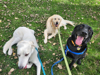 Alfie, Yoshi, and Lumi chewed on some bones at the house, before the walk. Yoshi complained to Alfie about the fact that Alfie was chewing on the bone he wanted, which was only the bone he wanted because Alfie was chewing on it. Lumi managed to chew his own bone in peace. Buddy and Carl hung out by Jen, and Griff just lounged. We then headed out to Bear Creek Greenway. There were some close calls as the boys all wanted to sniff and mark the same tree trunks at the same time, but I don't think anybody got tagged. Further into the walk, Carl made sure we pulled over to check out the boulders by the basketball courts. Buddy rolled around in the grass while the others took it easy in the shade for a couple minutes. We continued on, then pulled over so the dogs could sniff around another tree that seems to be becoming a favorite stop for Lumi, who was the one to insist on the stop today.